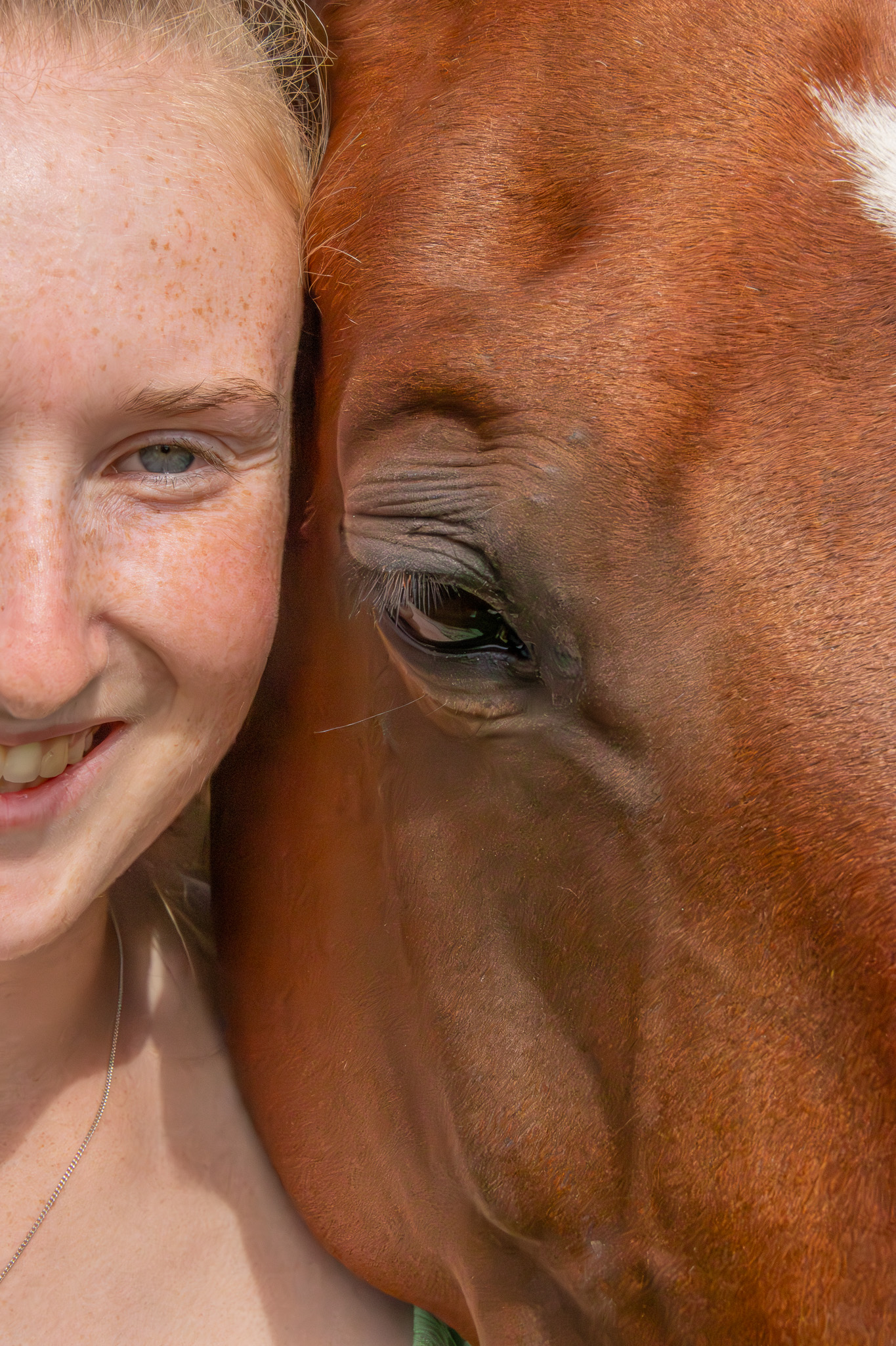 Fotoshoot met paard Foto’s met dieren Natasja met paard Dolly Camera Canon EOS 80D Familie fotografie Natasja met paard Dolly